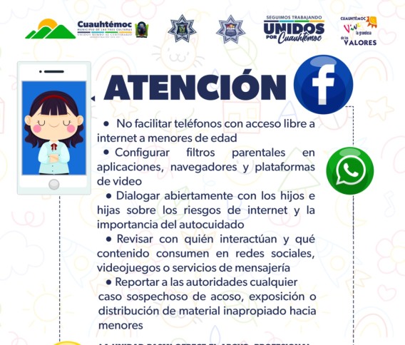 La Dirección de Seguridad Pública Municipal emitió una alerta urgente dirigida a padres de familia y docentes, ante el incremento en la exposición de adolescentes a contenido violento y sexual a través de plataformas digitales como WhatsApp, TikTok, Instagram, Facebook y YouTube.